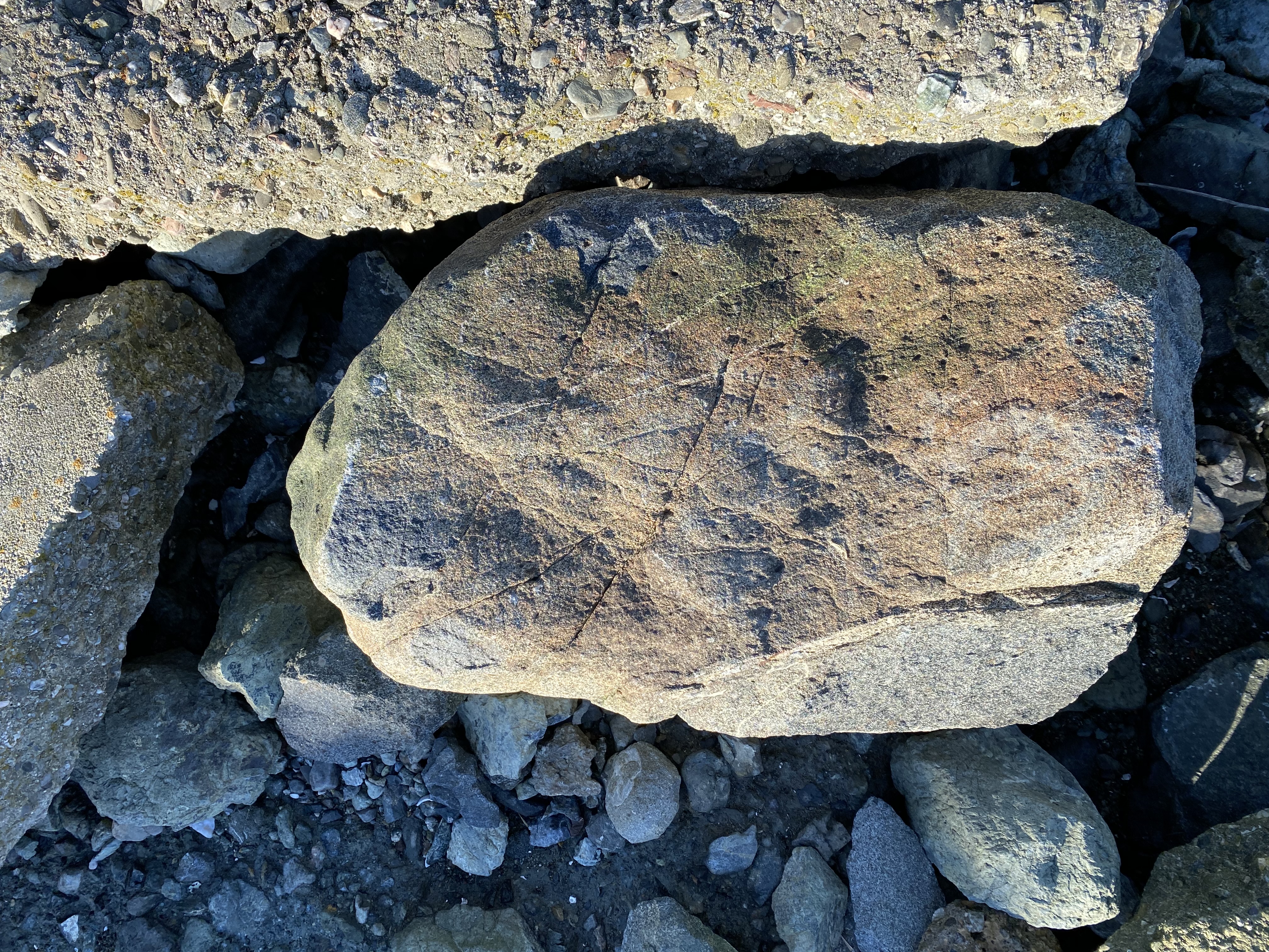 A unique stone is selected for each lamp – in this case a greenish lichen covered granite rock from the California coast becomes the massive base for the softly anodized aluminum lamp.